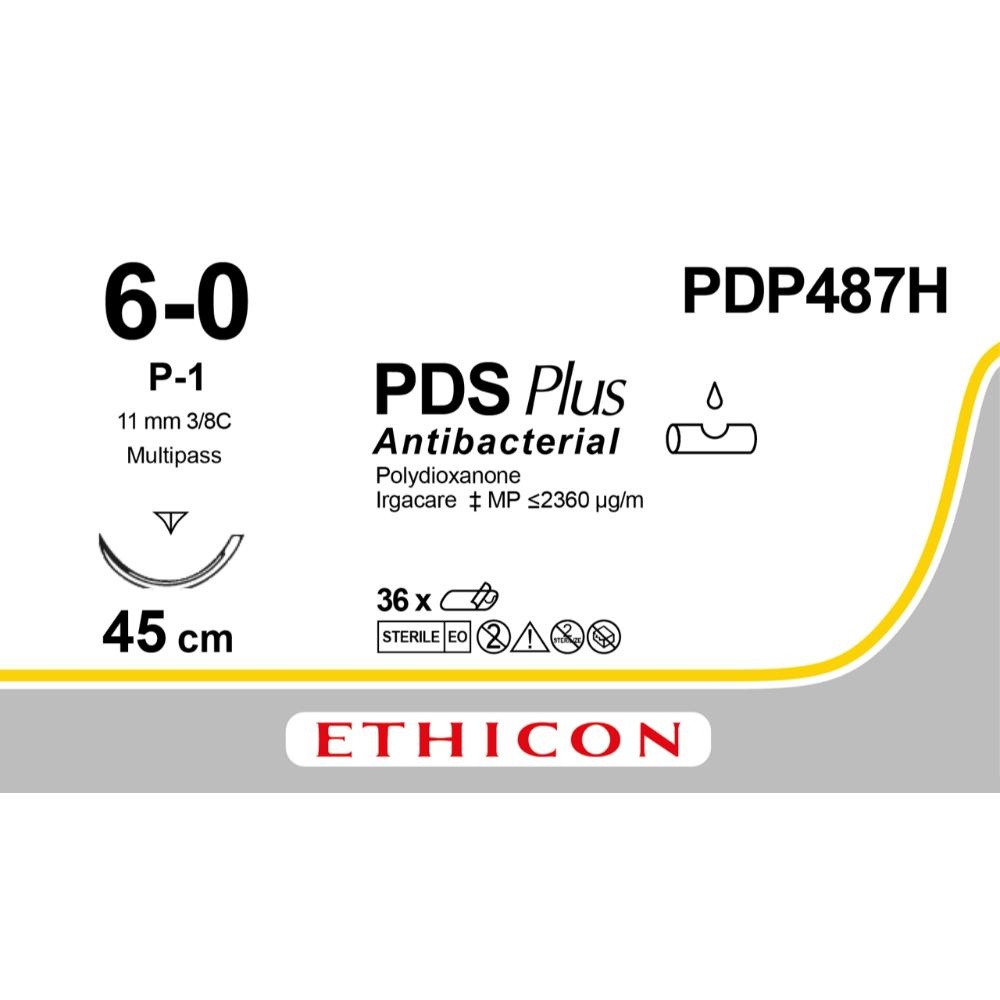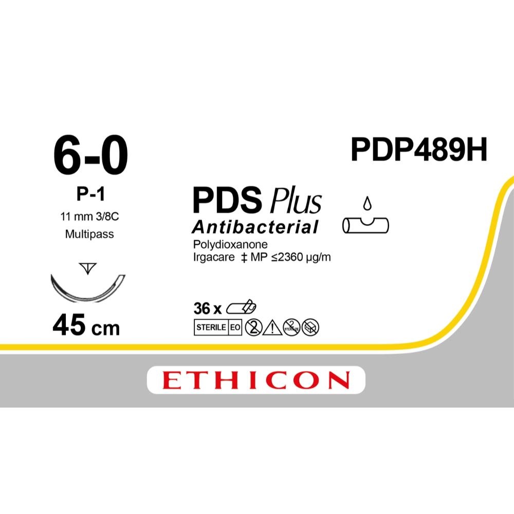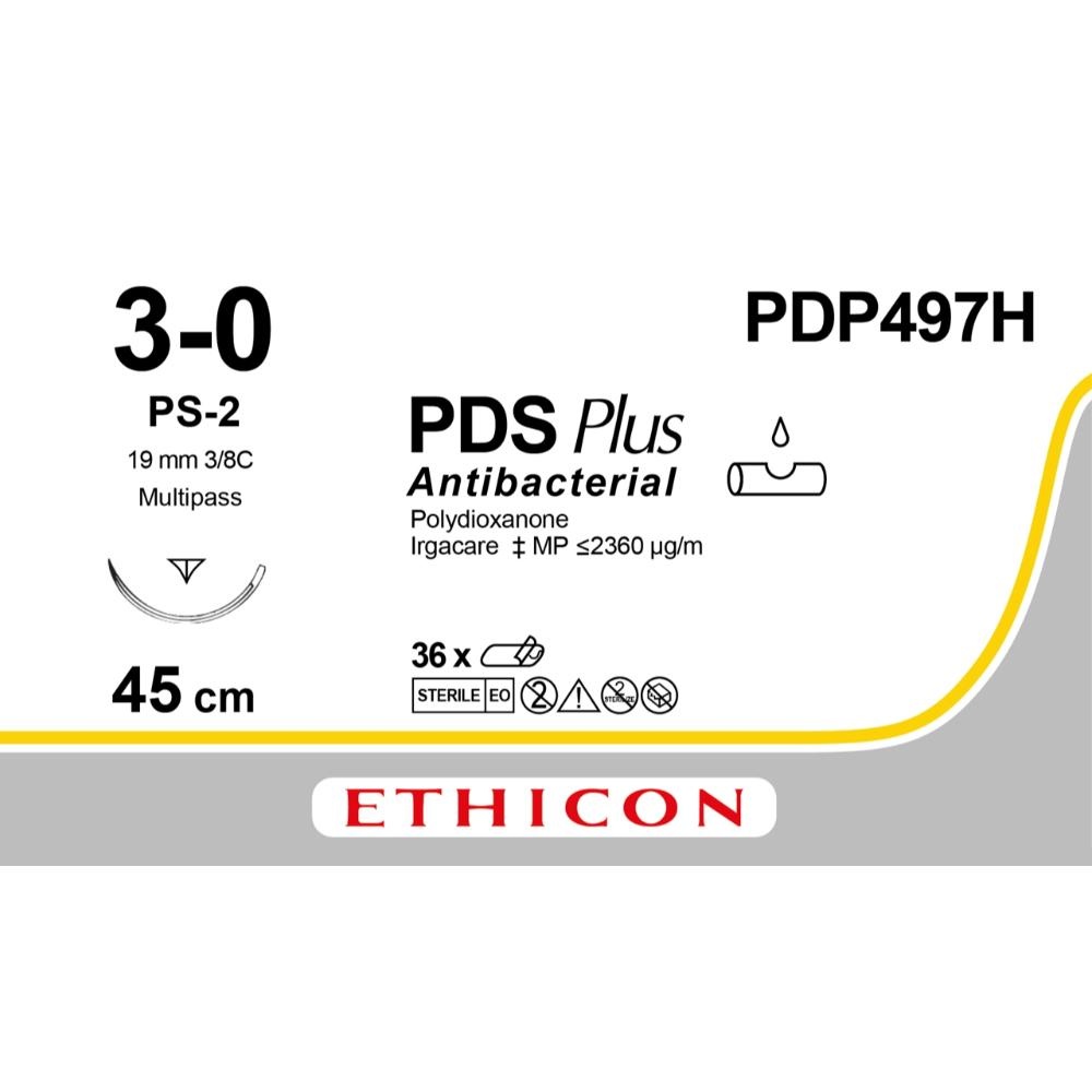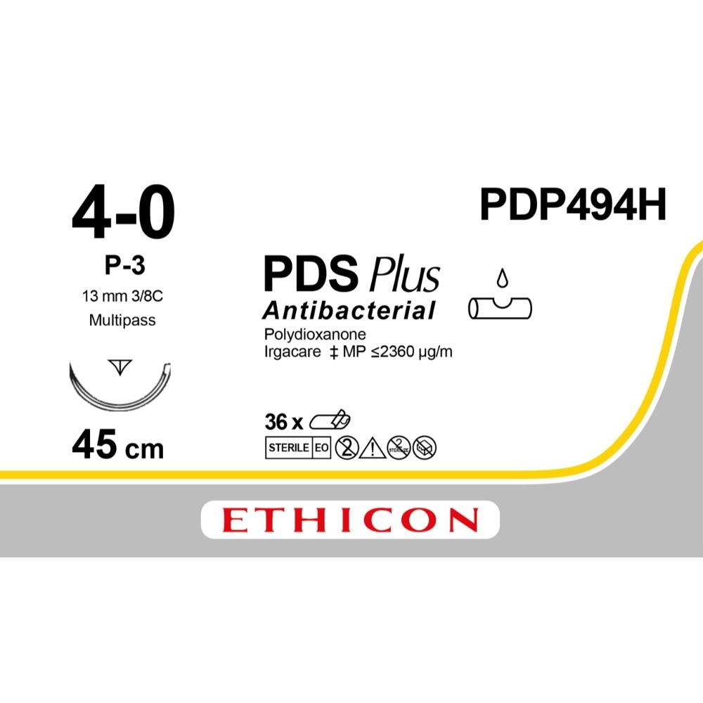De PDS Plus hechtdraad is een langzaam resorbeerbare draad gemaakt uit synthetisch monofilament Polydioxanon. Bovendien is hij uitgerust met een antiseptische coating gemaakt van Irgacare-MP (triclosan). Dit breedspectrum anti-bacteriële laag minimaliseert het risico op infecties door het vermijden van de creatie van een biofilm. Deze hechtdraad biedt een wondondersteuning/treksterkte van meer dan 60 dagen en heeft een trage resorptie van 180-120 dagen. Deze hechtdraad heeft zijn toepassingen bij weefsel dat lange ondersteuning nodig heeft om te helen, zoals oa. fascia en peeshechtingen.